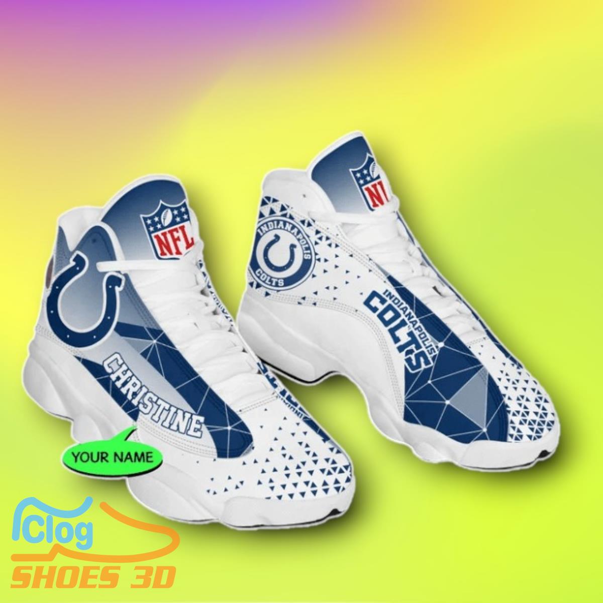 Step onto the field in style with the Indianapolis Colts Custom Name Air Jordan 13 Shoes Style Gift. Designed with the iconic Colts colors and logo, these custom shoes are perfect for any die-hard fan. Personalize them with your name or favorite player’s name for a truly one-of-a-kind look. Whether you’re heading to the game or just showing off your team spirit, these Air Jordan 13 shoes will make a bold statement. Don’t miss out on the opportunity to rock your Colts pride in